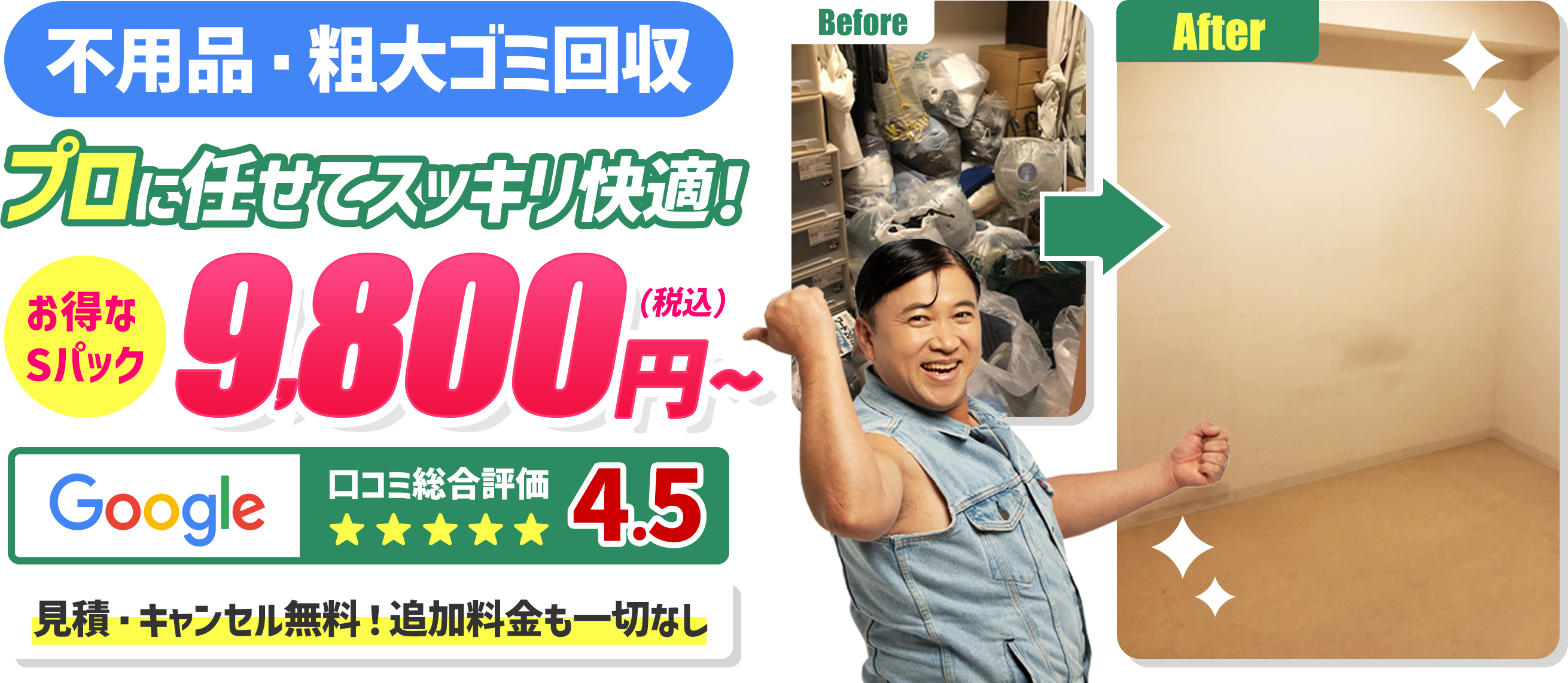 格安プラン設計粗大ゴミ回収、ゴミ屋敷の片付け、ハウスクリーニングなど、お客様のご要望に合わせ、最適・格安プランをご提示させて頂きます!