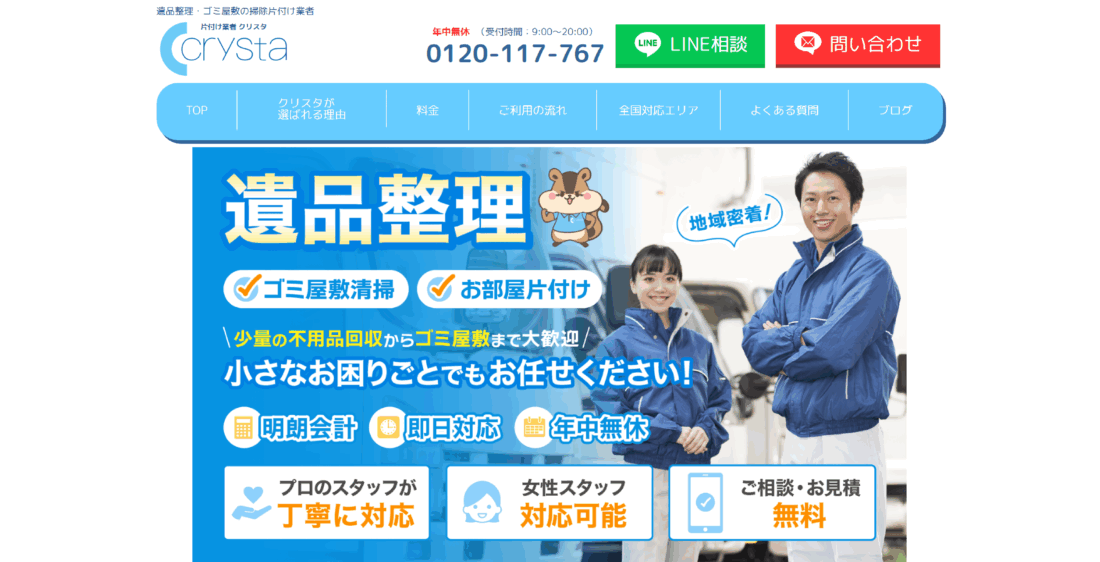 クリスタは、片付けの悩みを抱えている方や、「どこから手をつけたらよいか分からない」と感じている方にこそオススメしたい片付け業者です。